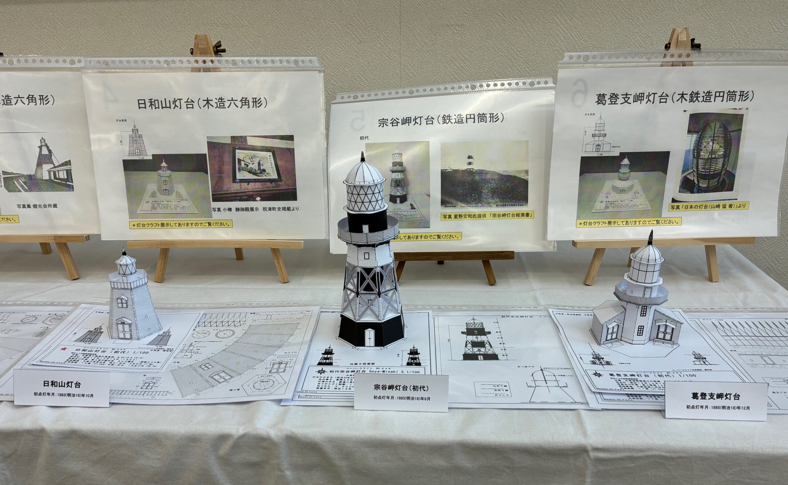 ペーパークラフト展 投稿日:2026年01月19日|カテゴリ:お知らせ 札幌青葉郵便局では、山本雅晴さんのペーパークラフト展1月30日迄開催中! 『北海道の開拓を照らした西洋式灯台』6基を展示。実物大100分の1サイズになっており、ふだん見ることのできない上方部分、全体を観ることができます。 実物の灯台写真と初点灯年月が記載されています。 観に行かれる方は、足元に気をつけてくださいね。 12:00~13:00まで、お昼休みで観れませんので、ご注意ください。